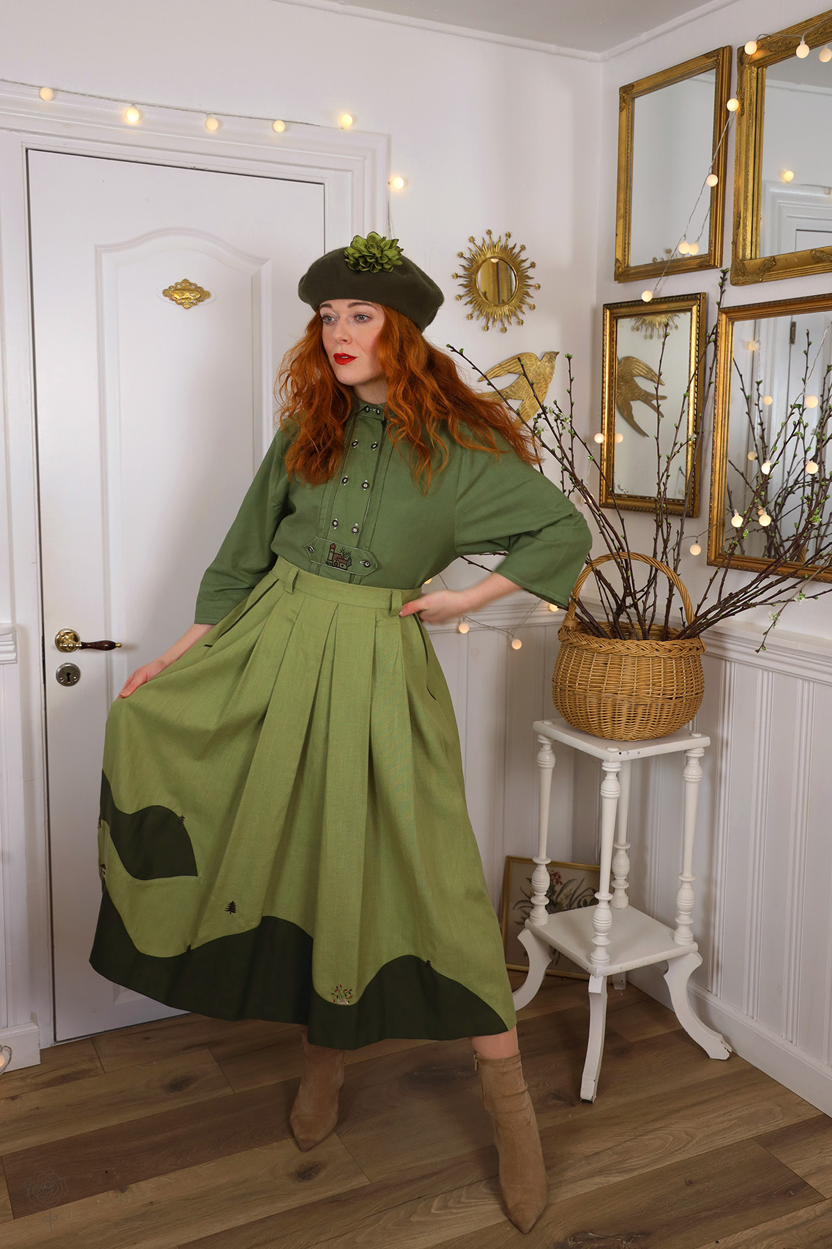 Stunning olive green vintage skirt in amazing quality and condition