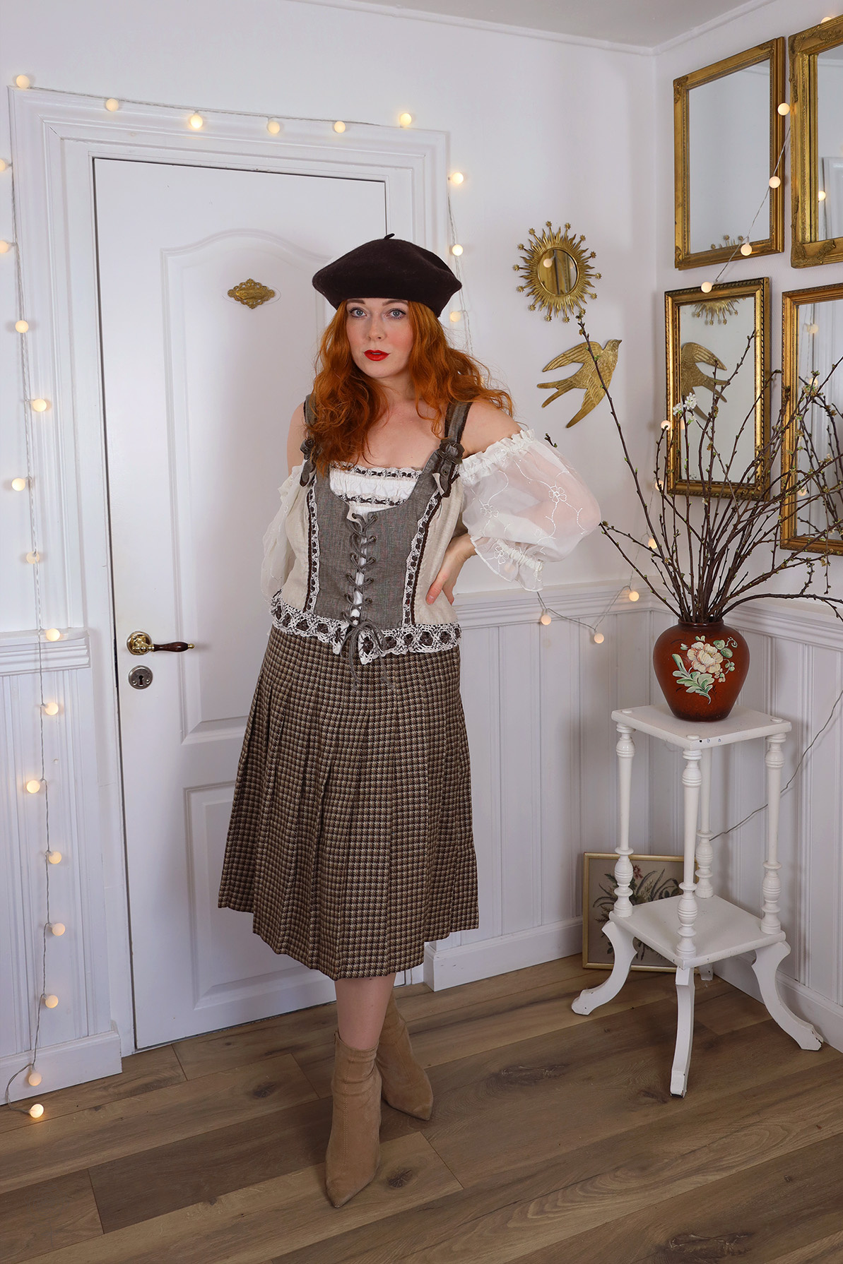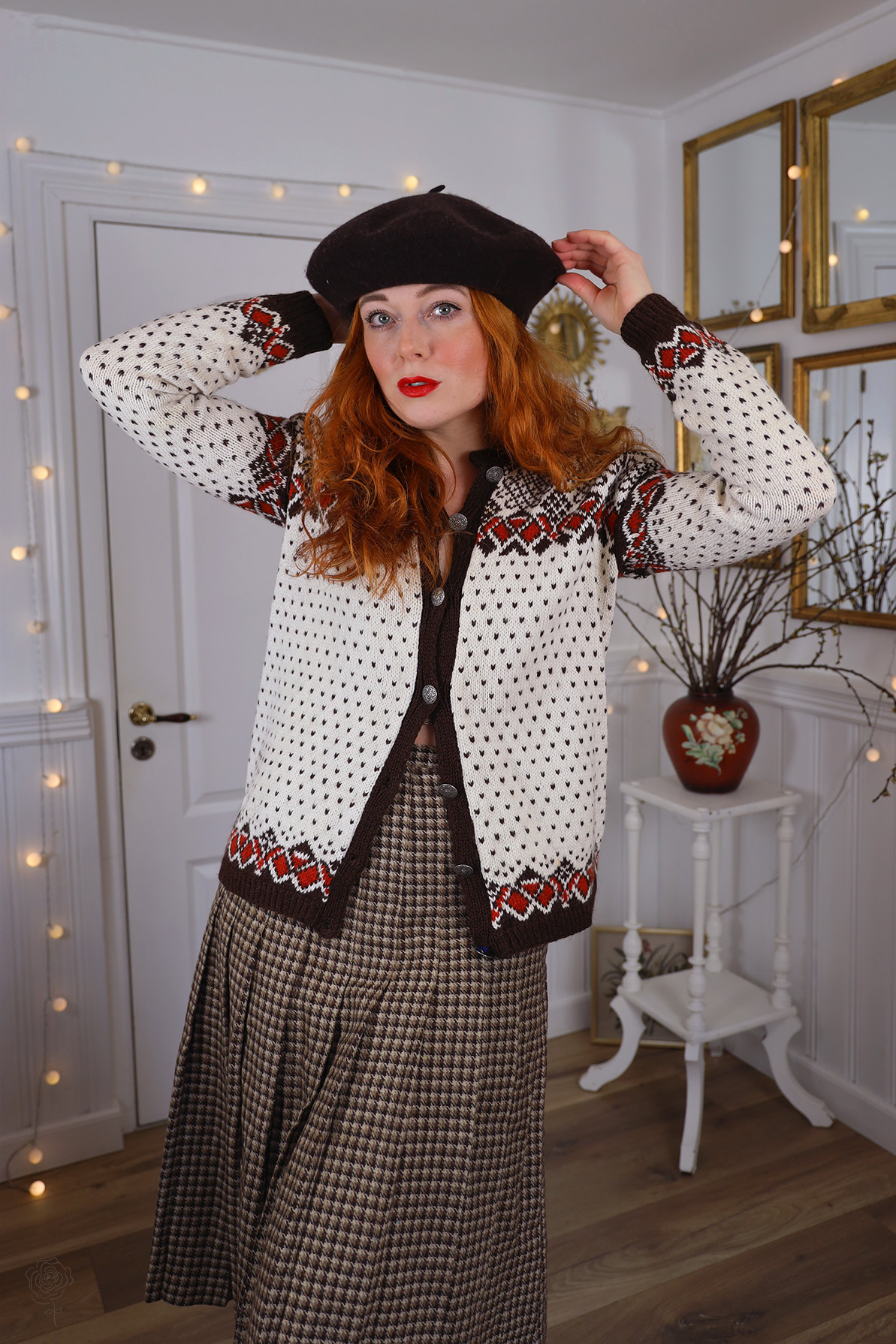 Brown houndstooth vintage skirt made of wool