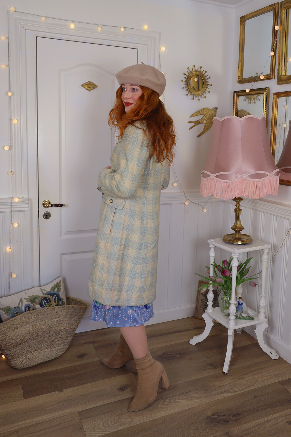 Feels like there’s some wool in the blend, with sage green polyester lining inside