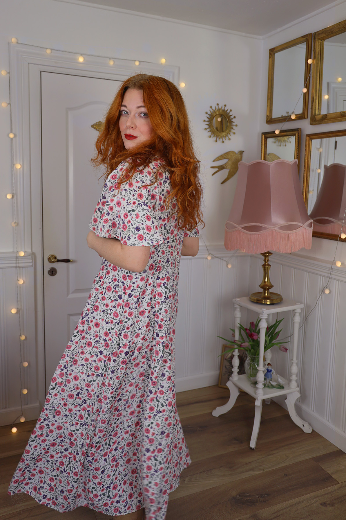 Light pink and purple floral 90’s vintage dress