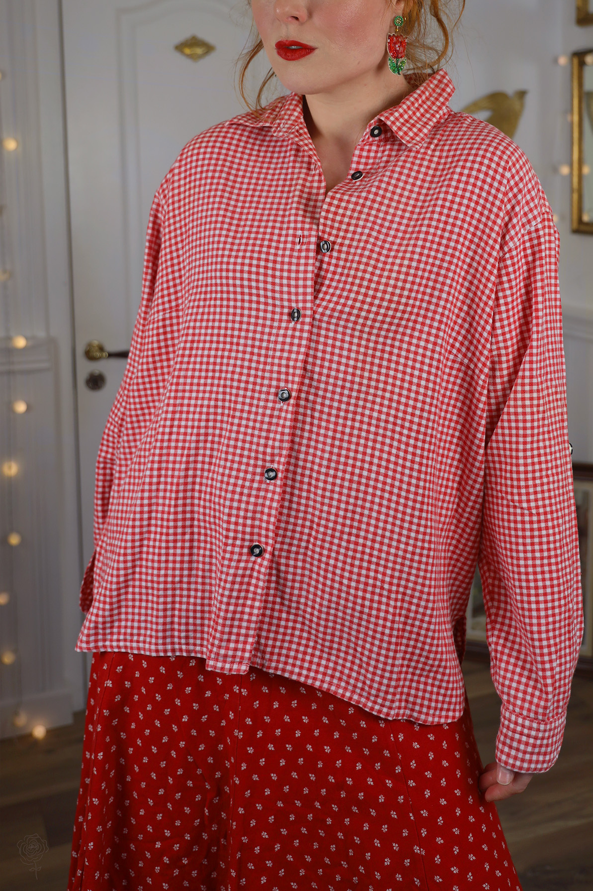 Red gingham vintage blouse with buttons down the front