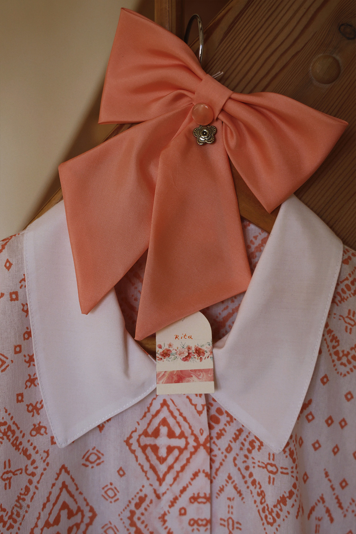 The blouse comes with a stunning bow also made by Rita herself.