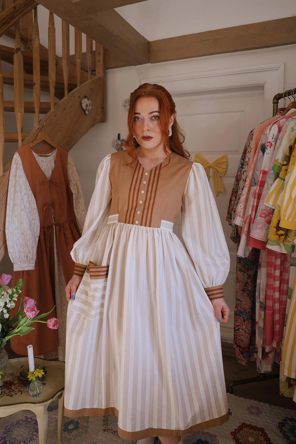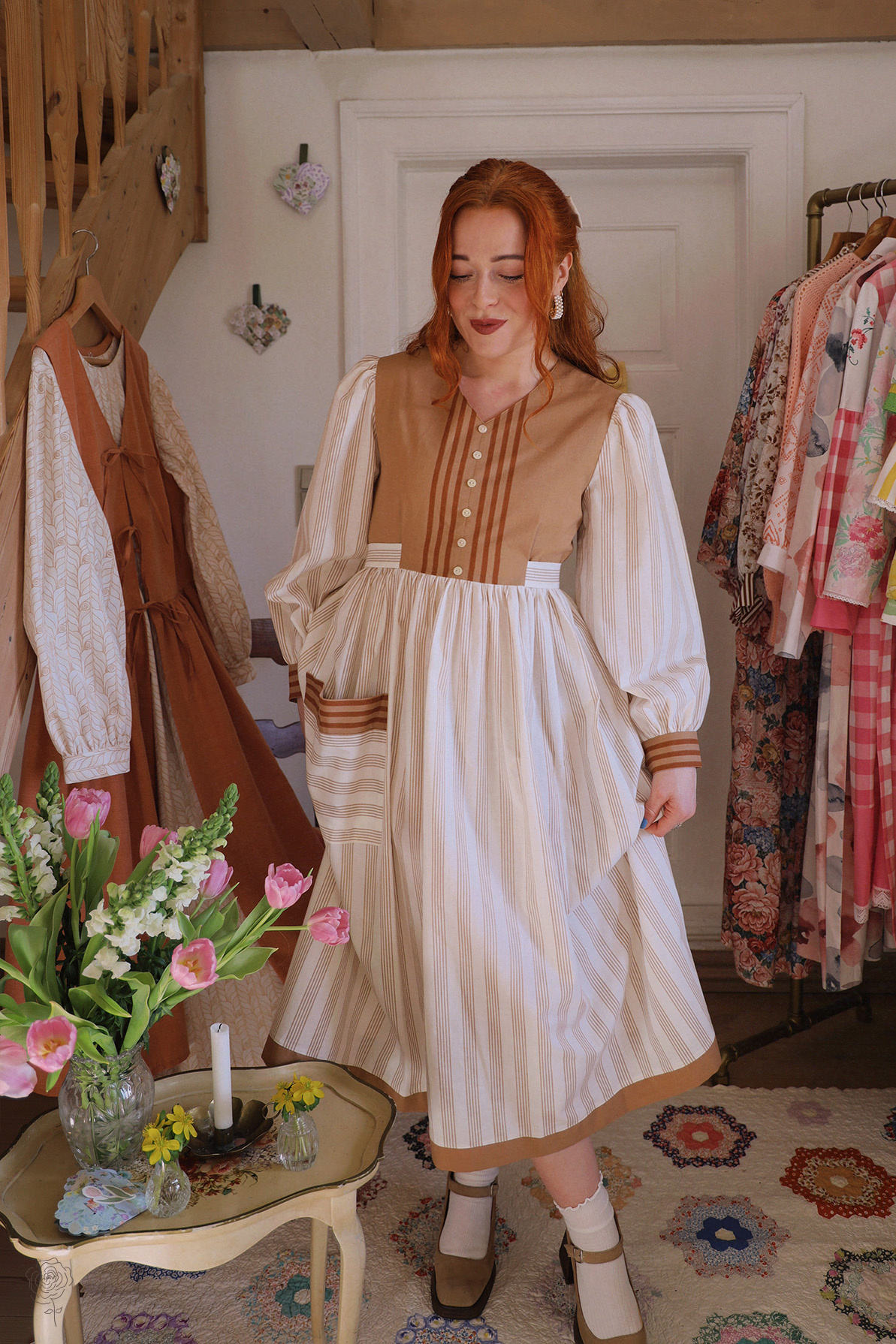 The dress also has a pocket on the front - made of a mix of two different cotton materials