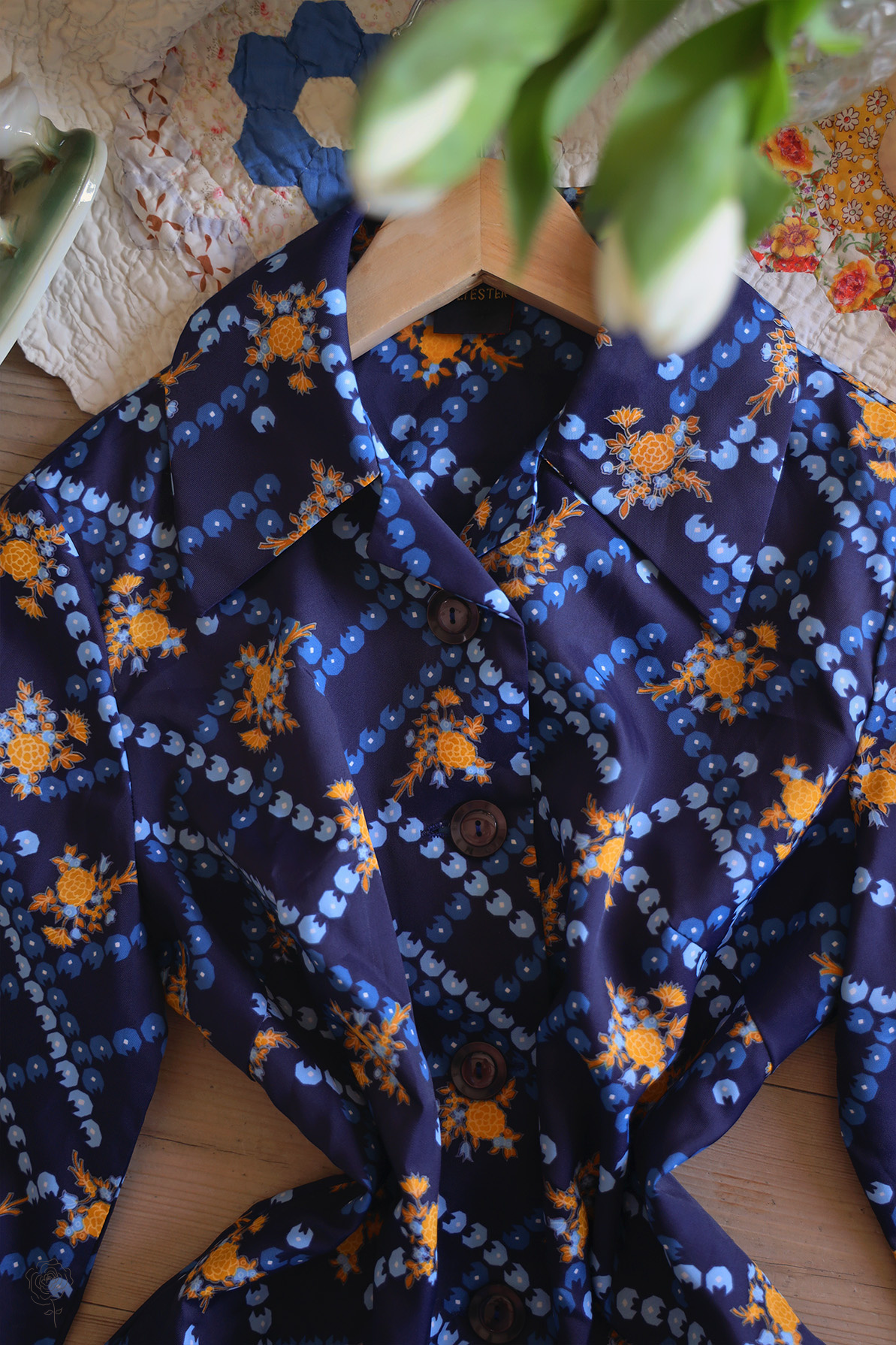 Funky pattern vintage blouse with flowers and pacman looking patterns
