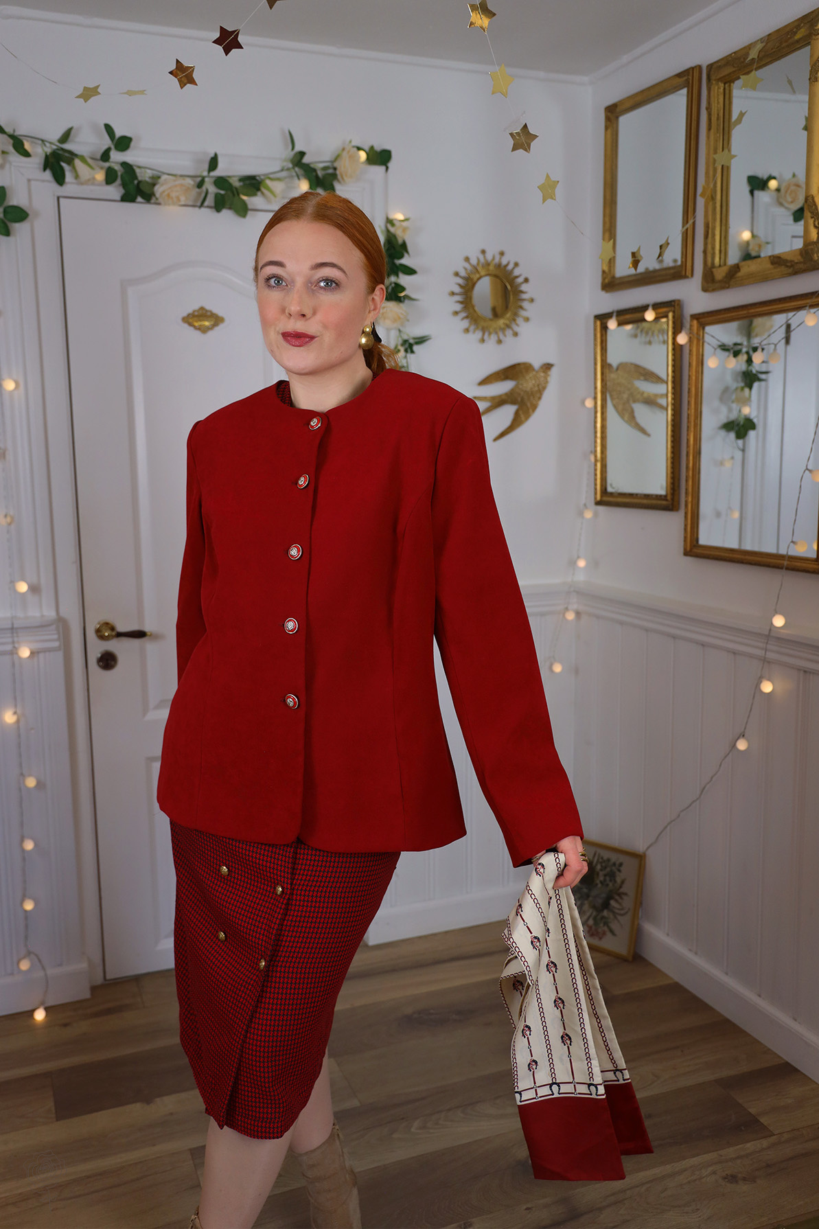 Bright red vintage blazer jacket with red and golden buttons down the front