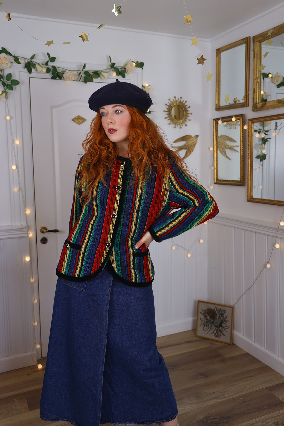 Mixed in material but mainly wool, then acrylic, cotton and viscose, so it’s soft and comfy