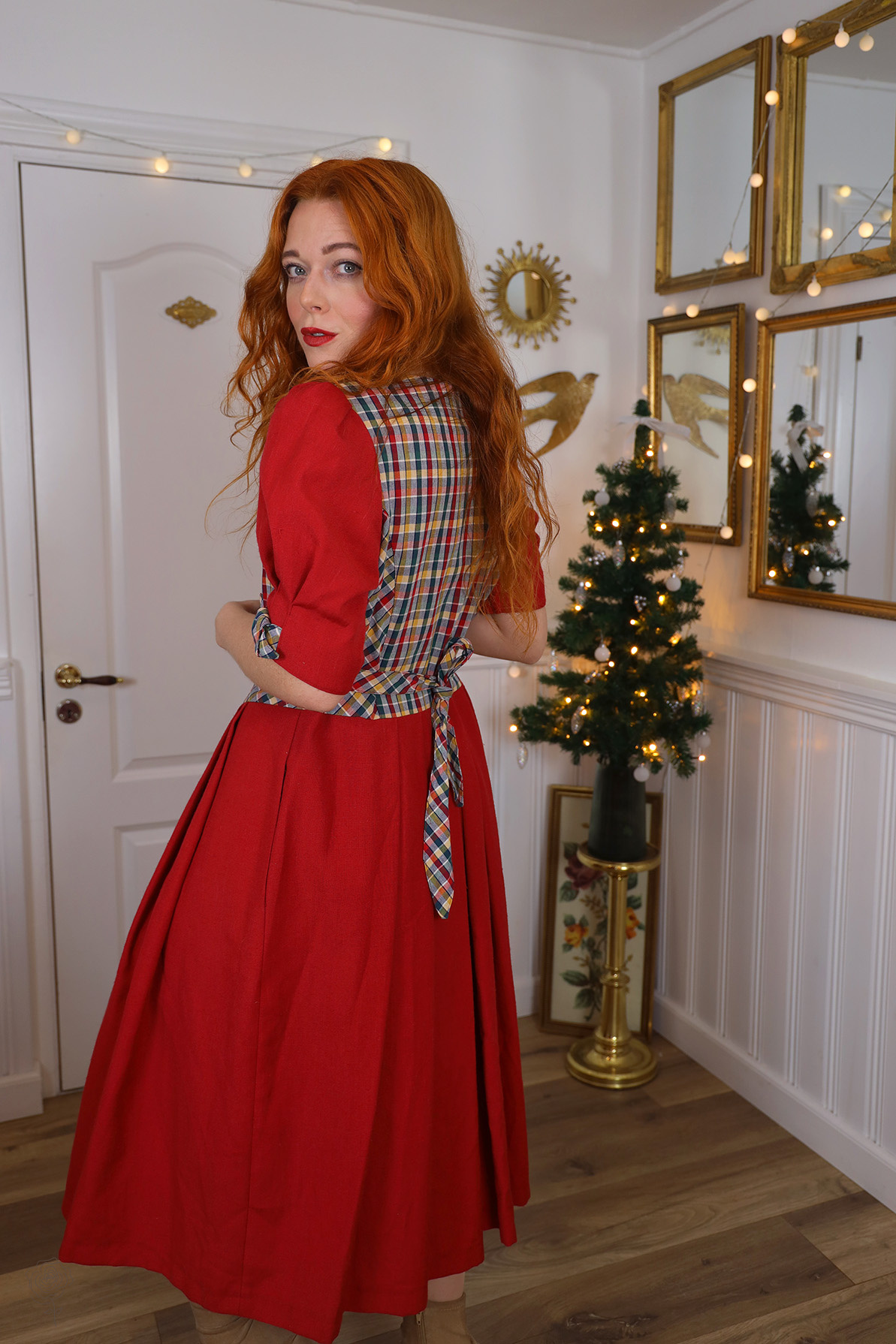 Red vintage dress with green, yellow and red plaid torso